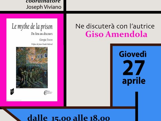 Presentazione aperta la pubblico del libro di Giorgia Tiscini: “Le mythe de la prison“. L’autrice ne discuterà con Giso Amendola; coordina Joseph Viviano. Giovedì 27 aprile, ore 15-19. Università degli…