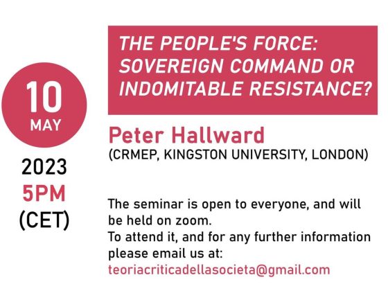 TCS INTERNATIONAL SEMINARS. May 10th 2023, h. 5pm-7pm (CET; 4pm-6pm UK Time). We are glad to host a seminar by Peter Hallward (CREMP, Kingston University, London). The seminar will be…